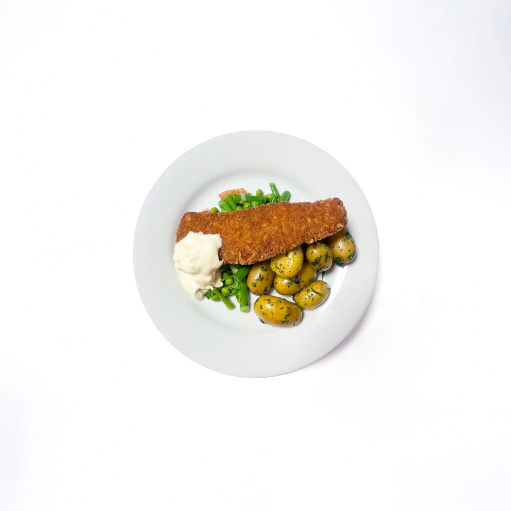 Lekkerbekje met groenten, krieltjes, remouladesaus en koolsla