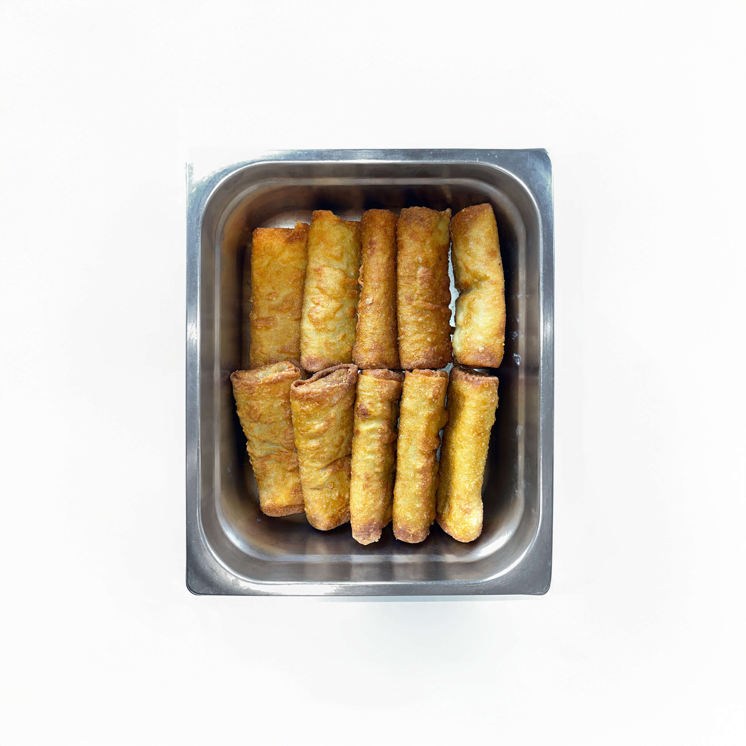 Stap 1: Bak de loempia’s af in de frituuur, bak ze zoals wordt aangegeven op de verpakking. Doe de loempia’s in een rvs bak en houd ze warm in de oven op 120 °C.