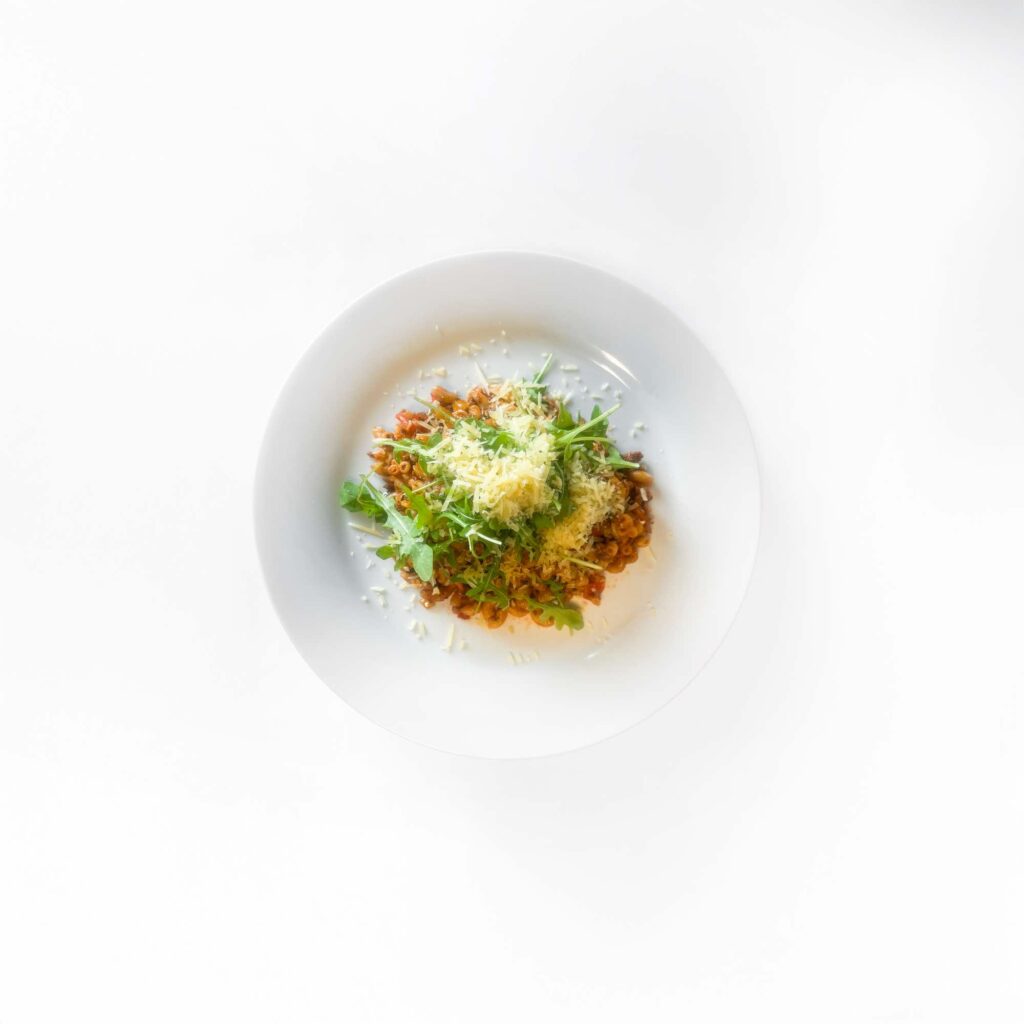 Pasta meatballs met rucola en geraspte kaas: