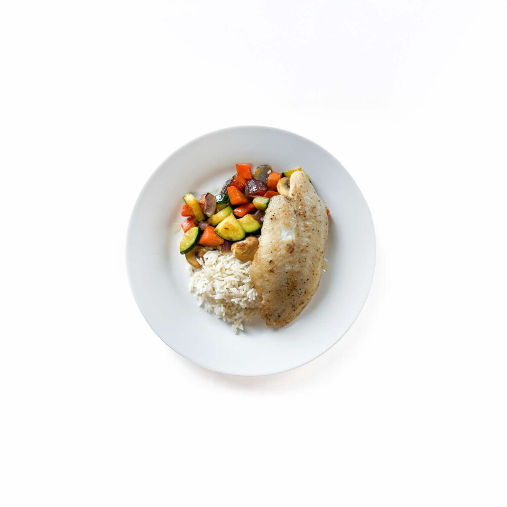 Panga filet met rijst en gemengde groenten